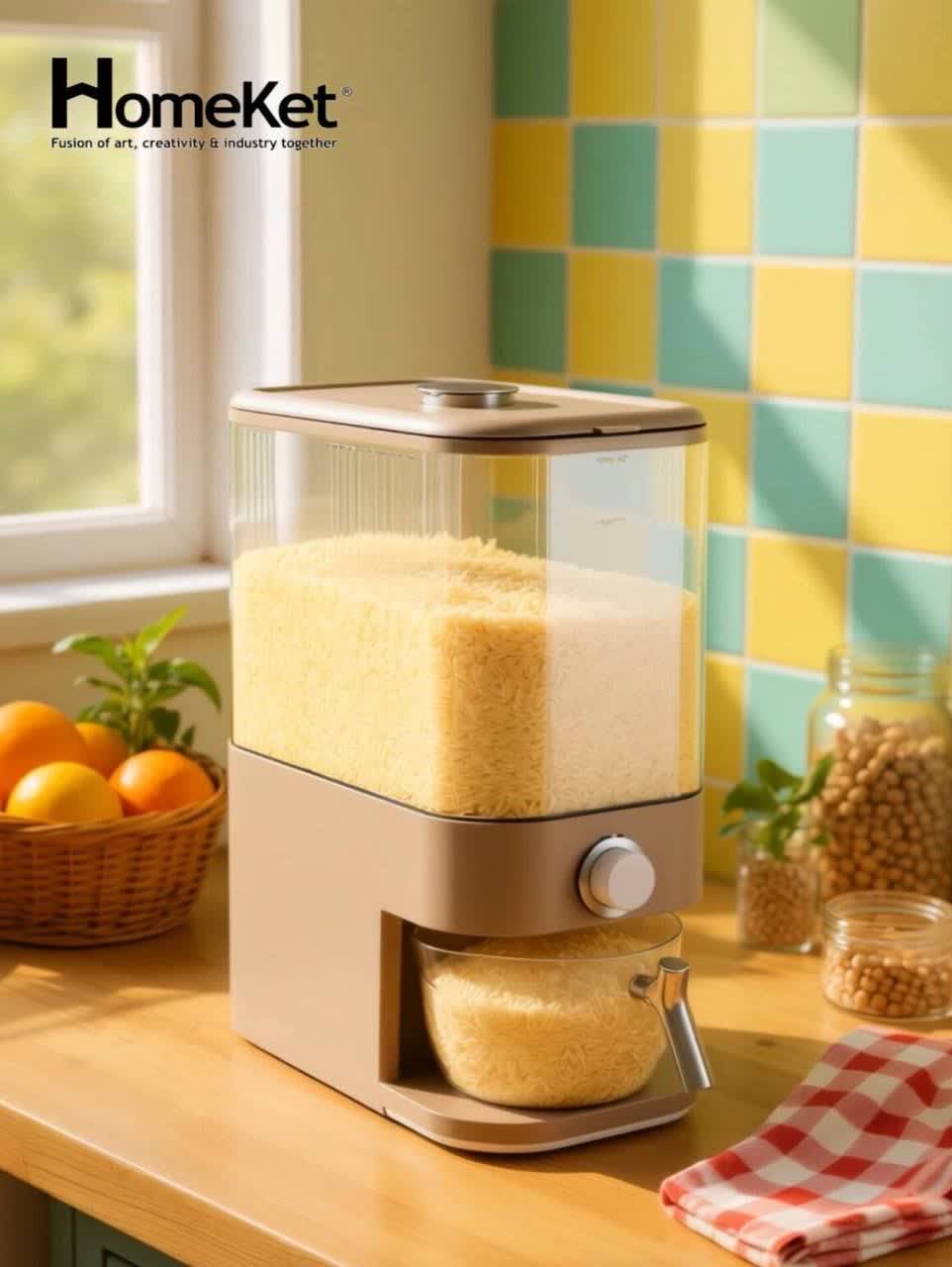 جا برنجی هومکت با ظرفیت ۱۰ الی ۱۲ کیلویی، گزینهای ایدهآل برای نگهداری برنج و سایر غلات است. این محصول مجهز به پیمانه اندازهگیری و محفظهای مخصوص برای قراردادن هل، سیر یا سایر افزودنیها جهت حفظ عطر و طعم برنج میباشد.✅ ظرفیت مناسب – ایدهآل برای نگهداری ۱۰ کیلوگرم برنج و سایر غلات✅ دارای پیمانه اندازهگیری – سهولت در برداشتن میزان مورد نیاز از برنج✅ محفظه مخصوص مواد معطر – حفظ عطر و تازگی برنج با قرار دادن هل، سیر و…✅ طراحی شیک و کاربردی – مناسب برای استفاده در آشپزخانههای مدرن و کلاسیک✅ ساختهشده از مواد باکیفیت – دوام بالا و مقاومت در برابر رطوبت و ضربه