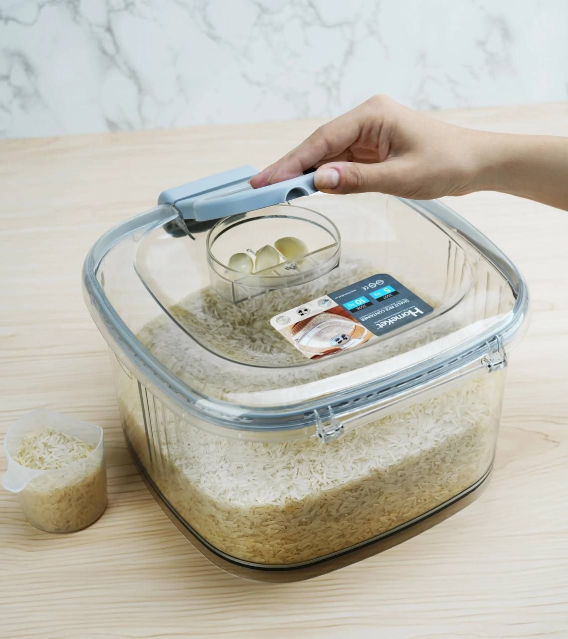 با انتخاب جابرنجیهای ۵ و ۱۰ کیلویی، دیگر نگران فساد، رطوبت یا حشرهزدگی برنج نخواهید بود. این محصولات با طراحی هوشمندانه، درب قفلی ایمن و واشر آببند، فضای نگهداریای کاملاً بهداشتی و ایزوله را برای برنج فراهم میکنند. وجود محفظه مخصوص برای نگهداری مواد طبیعی مانند سیر یا هل، کمک میکند تا به شکل طبیعی از ورود حشرات جلوگیری شود.