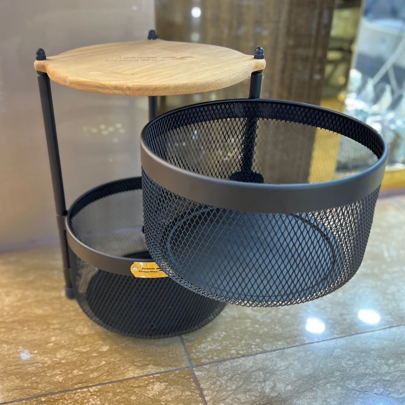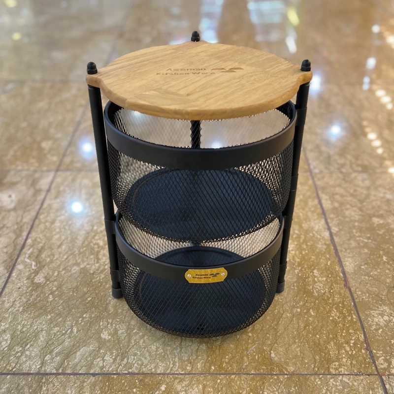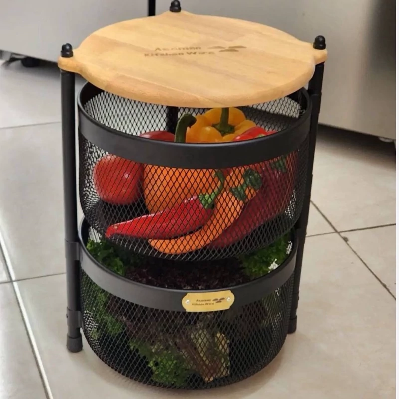 سبد سیب زمینی و پیاز آسمان مدل توری متحرک 2 طبقه چوبی